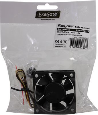 Вентилятор для корпуса ExeGate EX283370RUS 60x60x25 3pin ExtraSilent ES06025S3P, подшипник скольжения, 2500RPM, 22dBA