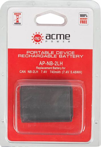 Аккумулятор AcmePower NB-2LH для Canon G7/ G9/ S30/ 40/ 45/ 50/ 60/ 70/ 80/ EOS 350D/ 400D/ Digital Rebel XT/ MV-5i/ 5iMC/ 6iMC/ 790/ 800 series/ 900-series/ MVX-200i/ 250i/ 300/ 330i/ 350i/ 20i/ 25i/ 30i/ 35i/ 40 7,4V, min 740mAh, Li-ion