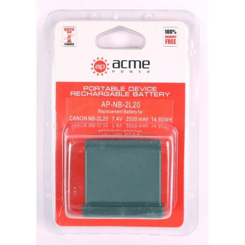 Аккумулятор AcmePower NB-2L20 для Canon MV-5i/ 5iMC/ 6iMC/ 790/ 800 series/ 900-series/ MVX-200i/ 250i/ 300/ 330i/ 350i/ 20i/ 25i/ 30i/ 35i/ 40i/ 45i/ MD100-series/ MD200-series/ HG10/ HV20/ HV30/ HV40/ DC301 7,4V, min 1900mAh, Li-ion