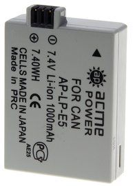 Аккумулятор AcmePower LP-E5/ NP-5 для Canon EOS 450D/ 500D/ EOS 1000D/ Rebel Xsi 7,4V, min 950mAh, Li-ion
