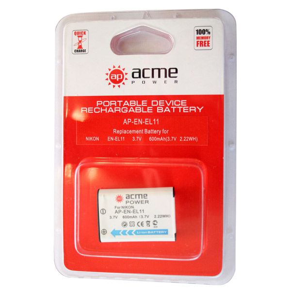 Аккумулятор AcmePower EN-EL11 для Nicon CoolPix S550/ S560/ Pentax L50/ L60/ M50/ M60/ V20/ W60/ Olympus FE-370 3,7V, min 600mAh, Li-ion
