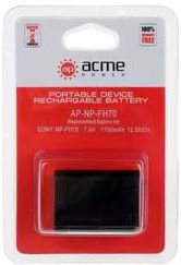 Аккумулятор AcmePower NP-FH70 для Sony DCR-DVD105/ DVD106/ DVD108/ DVD109/ DVD115/ DVD202/ DVD203/ DVD205/ DVD304/ DVD305/ DVD306/ DVD308/ DVD403/ DVD404/ DVD405/ DVD406/ DVD408/ DVD505/ DVD506/ DVD508/ DVD605 7,2V, min 1400 mAh, Li-ion