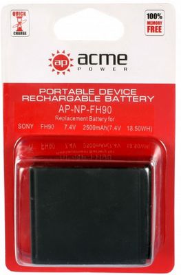Аккумулятор AcmePower NP-FH90 для Sony DCR-DVD105/ DVD106/ DVD108/ DVD109/ DVD115/ DVD202/ DVD203/ DVD205/ DVD304/ DVD305/ DVD306/ DVD308/ DVD403/ DVD404/ DVD405/ DVD406/ DVD408/ DVD505/ DVD506/ DVD508/ DVD605 7,2V, min 2000 mAh, Li-ion