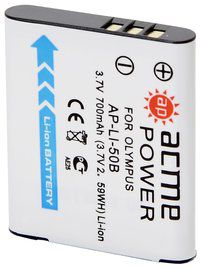Аккумулятор AcmePower LI-50B для Olimpus mju-1010/ mju-1020/ mju-1030 SW/ mju-1040/ mju-9000/ mju TOUGH-6000/ mju TOUGH-8000/ FE-370 3,7V, 700mAh, Li-ion