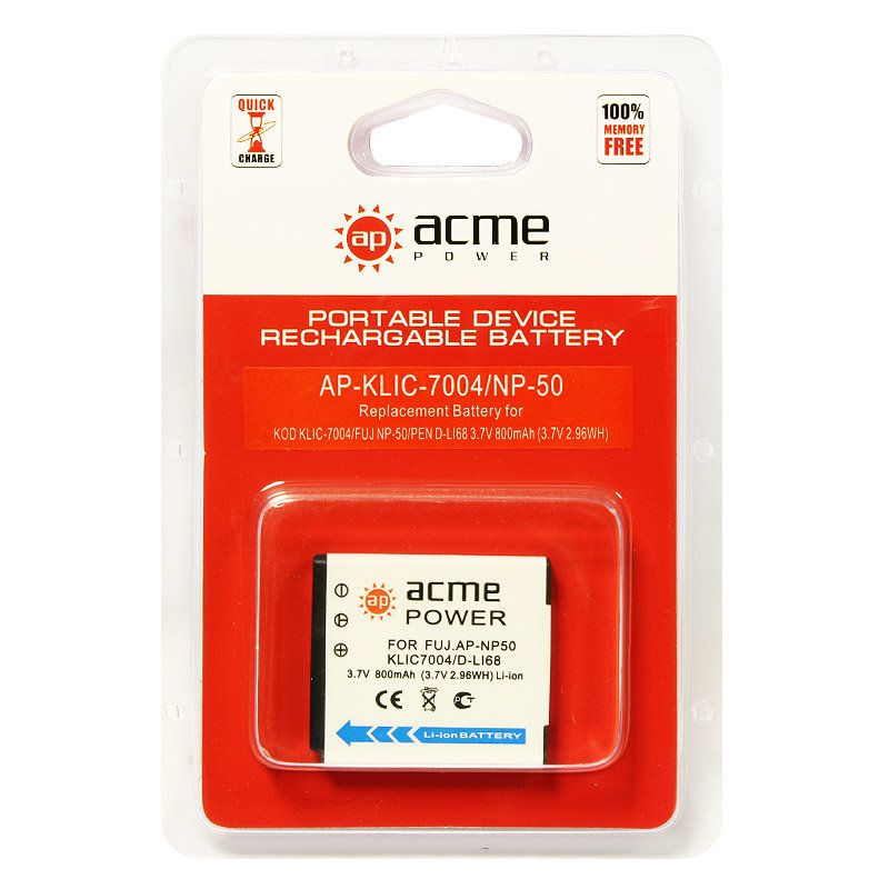 Аккумулятор AcmePower NP-50 для FujiFilm FinePix F50 fd/ F60 fd/ F100 fd/ F200EXR/ Pentax Optio - S10/ S12/ A40/ Kodak EasyShare M1033/ M1093 IS/ V1073/ V1233/ V1253/ V1273 3,7V, min 680mAh, Li-ion