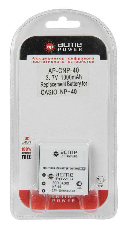 Аккумулятор AcmePower NP-40 для FujiFilm FinePix F455/ F460/ F470/ F480/ F610/ F650Zoom/ F700/ F710/ F810/ J50/ V10Zoom/ Z1/ Z2 3,7V, min 660mAh, Li-ion