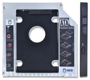 Описание Переходник, позволяющий установить HDD формата 2.5" вместо оптического привода (высотой 9.5 мм). Такие устройства также называют Optibay, HDD Caddy, адаптер hdd вместо dvd