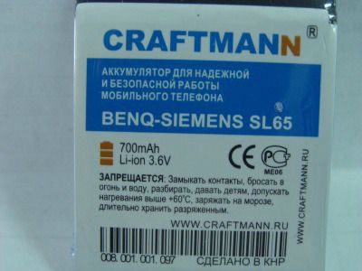 Аккумулятор Craftmann EBA-650 для BenQ-Siemens SL65
