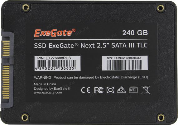 Накопитель SSD ExeGate EX276688RUS 240Гб SATA-III 2,5” TLC A400Next 3D