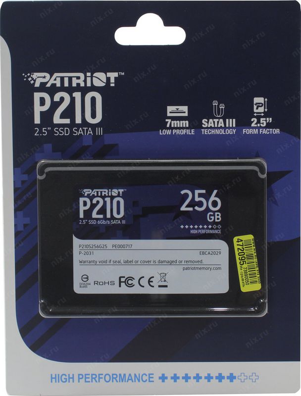 Накопитель SSD Patriot P210S256G25 256Гб SATA-III 2,5” TLC P210 , up to 500 400Mbs, 3D , 7mm