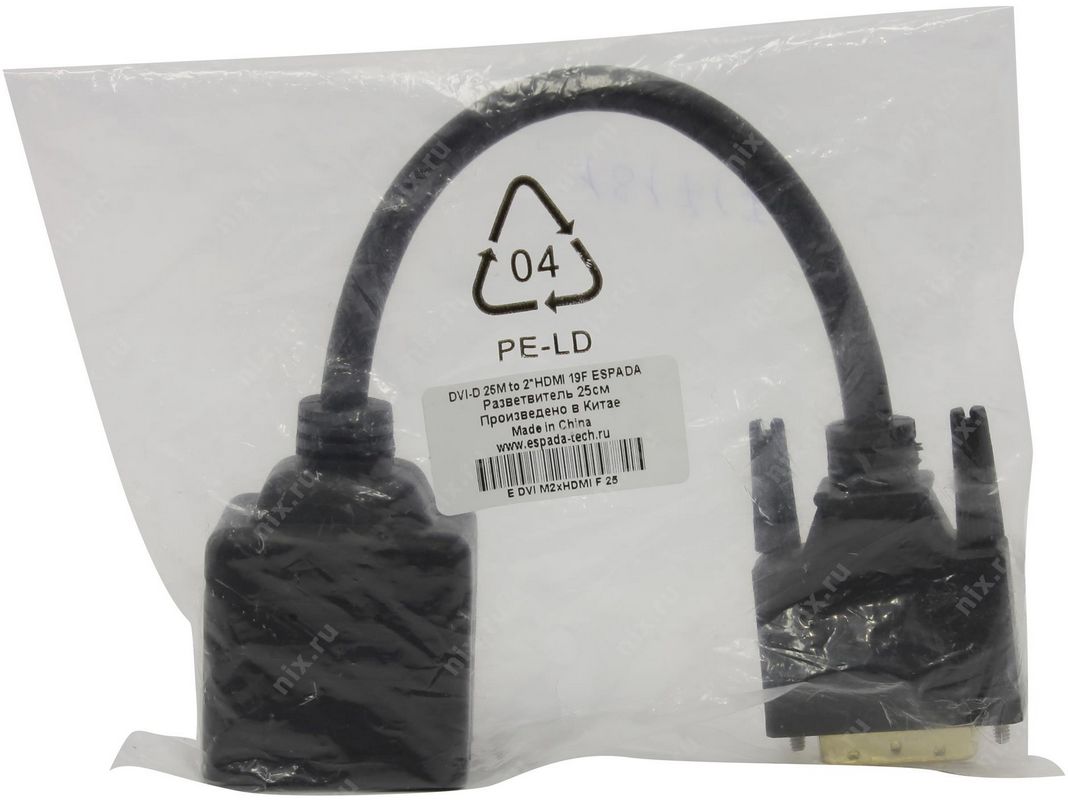 Разветвитель аудио-видео Espada 39856 0,25м DVI-D 25M to 2xHDMI 19F 25cm (EDVIM2xHDMIF25)