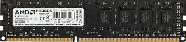 Оперативная память 8Гб AMD R538G1601U2S-U DDR3 PC3-12800 CL11 1,5V Radeon™ 1600 DIMM R3 Value Series Black Non-ECC, Retail
