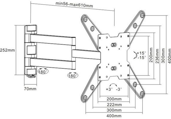 Крепление монитора или телевизора к стене VESA 75 x 75, VESA 100 x 100, VESA 200 x 100, VESA 200 x 200, VESA 300 x 300, VESA 400 x 200, VESA 400 x 400