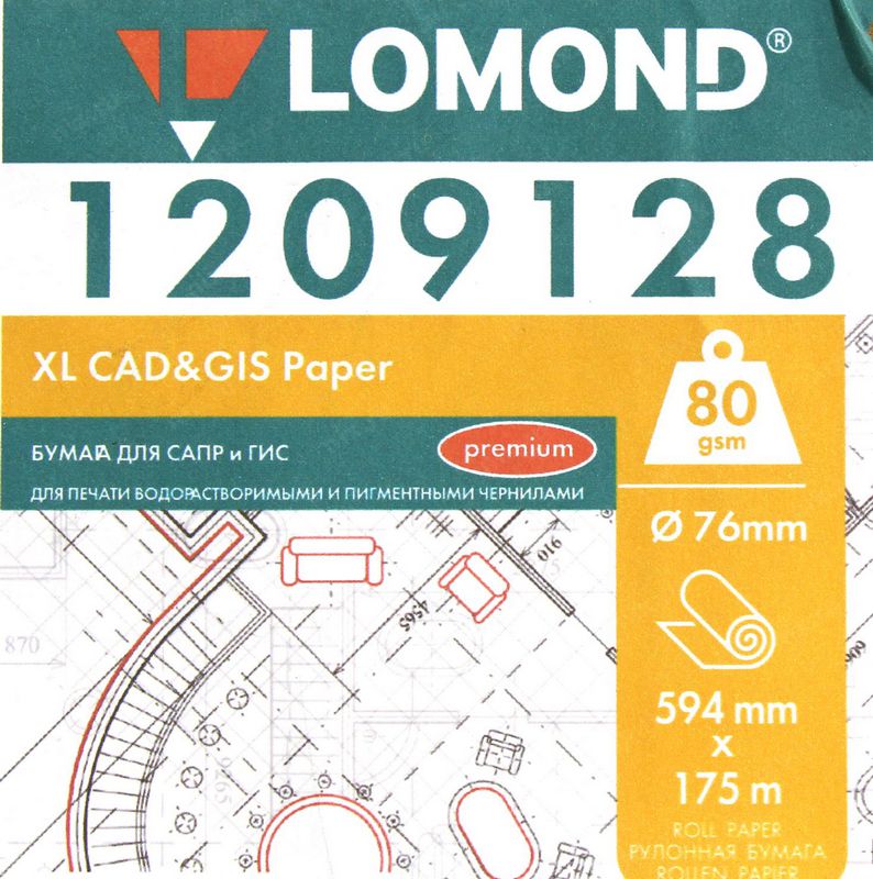 Бумага Lomond 1209128 80г/м2 матов. A3/594мм x 175м/80г/м2/рул. инженерная бумага ”Премиум”