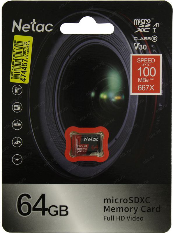 Карта памяти 64Гб Netac NT02P500PRO-064G-S microSDXC Class 10 P500 Extreme