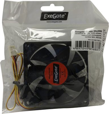 Вентилятор для корпуса ExeGate EX166174RUS 80x80x25 3pin Mirage-S подшипник скольжения, 2000 RPM, 23dB