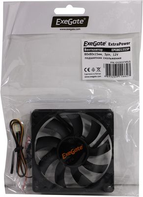 Вентилятор для корпуса ExeGate EX283374RUS 80x80x15 3pin ExtraPower EP08015S3P, подшипник скольжения, 2500RPM, 26dBA