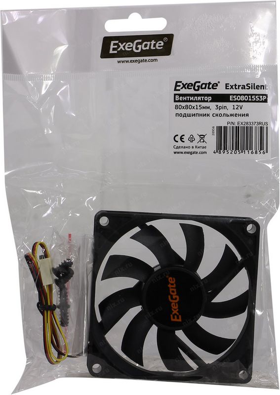 Вентилятор для корпуса ExeGate EX283373RUS 80x80x15 3pin ExtraSilent ES08015S3P, подшипник скольжения, 1600RPM, 23dBA