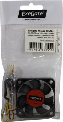 Вентилятор для корпуса ExeGate EX253943RUS 50x50x10 3pin Mirage-H гидродинамический подшипник, 4500 RPM, 22dB, 3pin