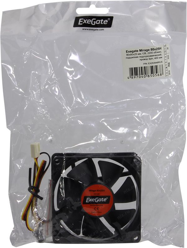 Вентилятор для корпуса ExeGate EX253948RUS 80x80x25 3pin Mirage-H гидродинамический подшипник, 2000 RPM, 22dB