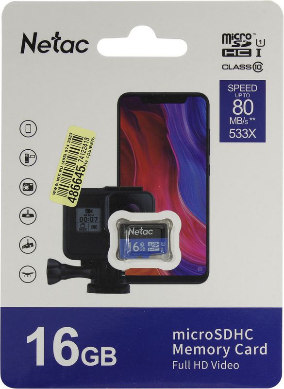 Карта памяти 16Гб Netac NT02P500STN-016G-S microSDHC 80MB/s