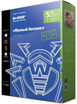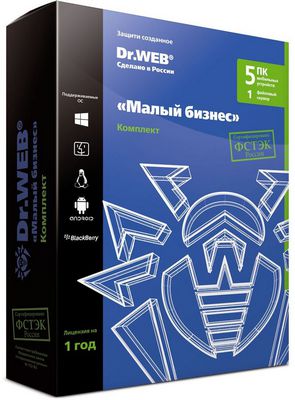 Антивирусное ПО DR.WEB BBZ-C-12M-5-A3 BOX Малый бизнес 5 ПК + 1 сервер 1 год Новая лицензия