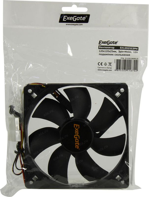 Вентилятор для корпуса ExeGate EX283389RUS 120x120x25 3pin+Molex EX12025S3PM, подшипник скольжения, 1200RPM, 25dBA