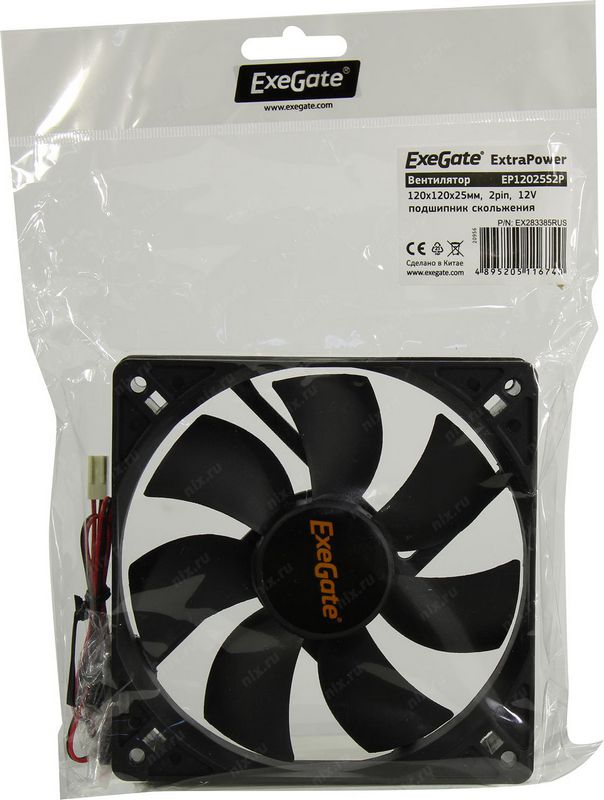 Вентилятор для корпуса ExeGate EX283385RUS 120x120x25 2pin ExtraPower EP12025S2P, подшипник скольжения, 1600RPM, 26dBA