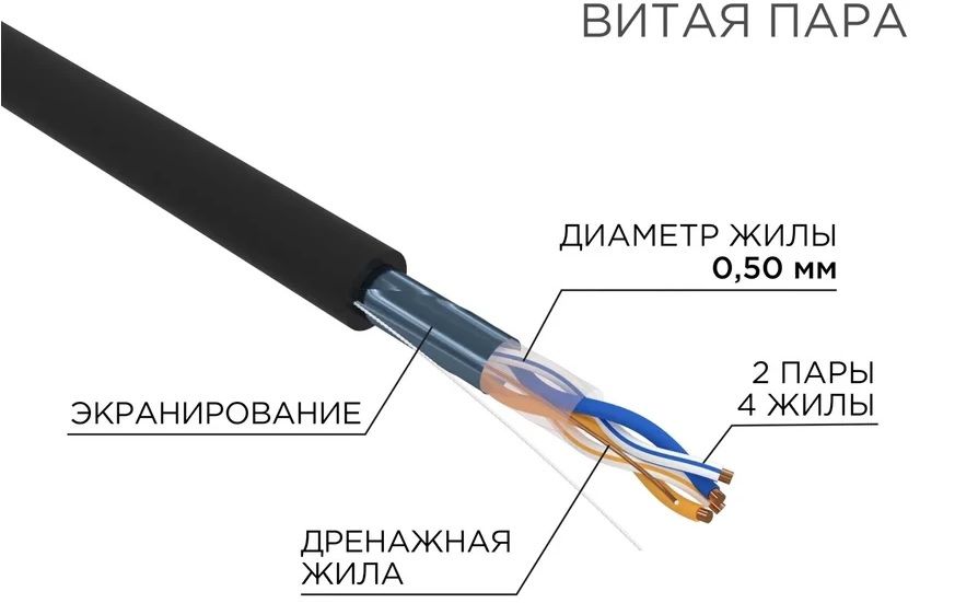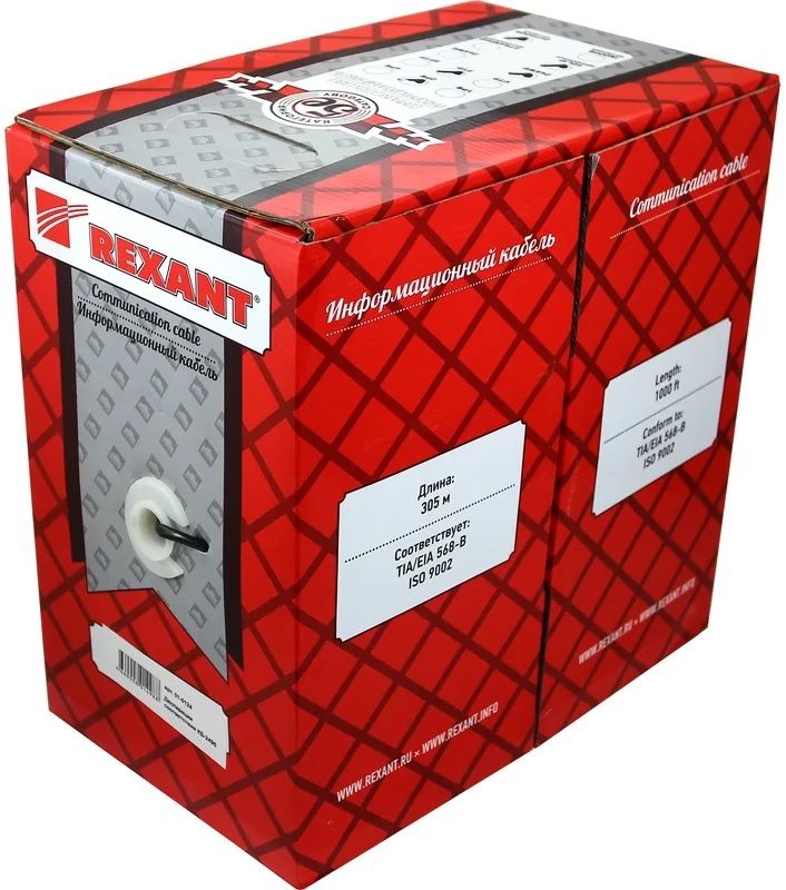 Кабель Rexant 01-0124 кат.5e 305м внешн. экран. черный витая пара FTP 2PR 24AWG, наружный бухта