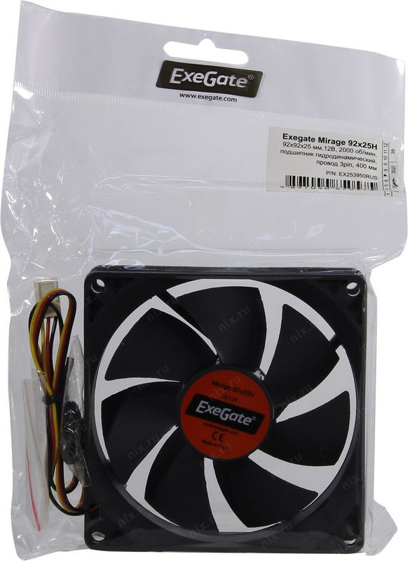 Вентилятор для корпуса ExeGate EX253950RUS 92x92x25 3pin Mirage-H гидродинамический подшипник, 1800 RPM, 22dB