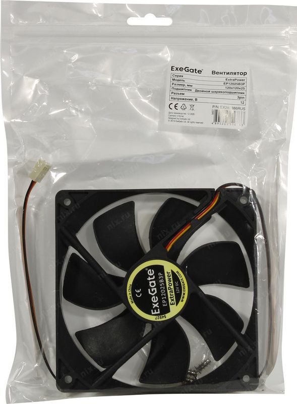 Вентилятор для корпуса ExeGate EX283386RUS 120x120x25 3pin ExtraPower EP12025B3P, двойной шарикоподшипник, 1600RPM, 25dBA