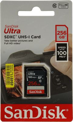 Описание Флеш-накопитель Sandisk Карта памяти SanDisk Ultra 256GB SDXC Memory Card 100MB/s, Class 10 UHS-I