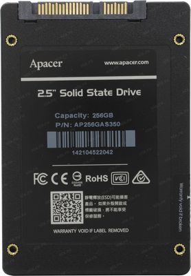 Накопитель SSD APACER AP256GAS350-1 256Гб SATA-III 2,5” TLC 180TBW PANTHER AS350 7mm, R560 W540 Mb s, IOPS 80 75K, MTBF 1,5M, 3D , 180TBW, Retail