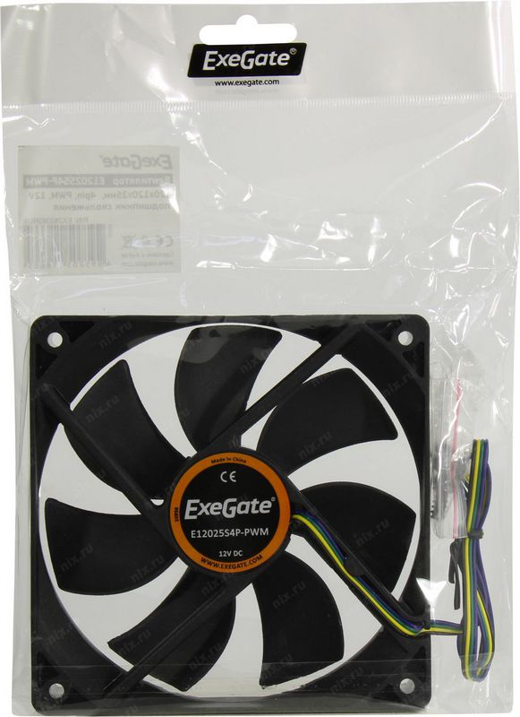 Вентилятор для корпуса ExeGate EX283393RUS 120x120x25 4pin E12025S4P-PWM, подшипник скольжения, 4pin, PWM, 25dBA