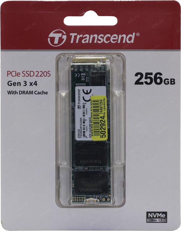 Описание Флеш-накопитель Transcend Твердотельный накопитель SSD 256GB Transcend M.2 2280, PCIe Gen3x4, M-Key, 3D Nand