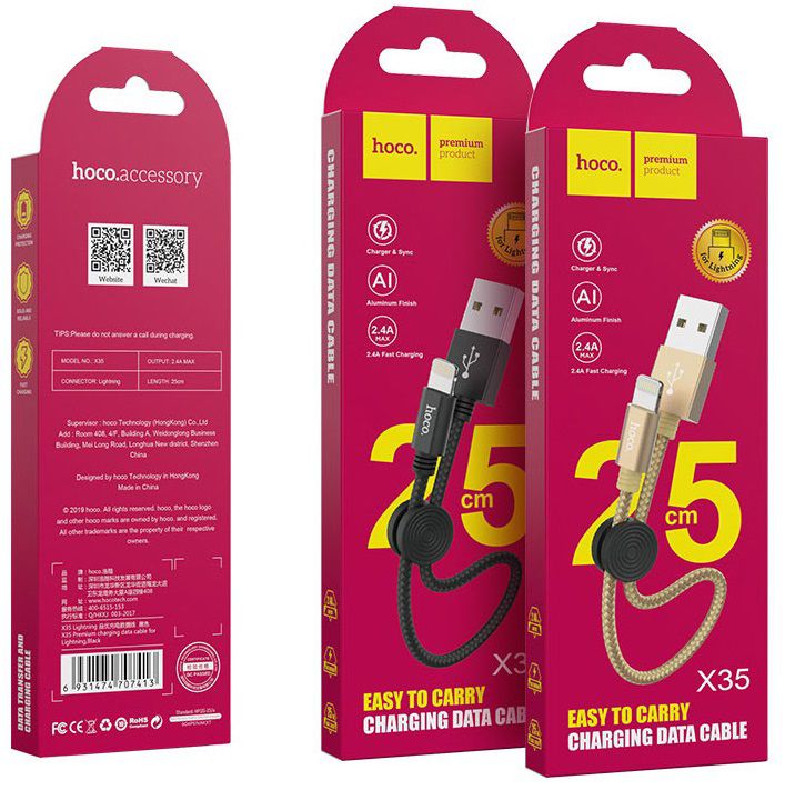 Кабель USB Hoco 19148 0,25м 2.0 hoco X35, AM/Lightning, золотой