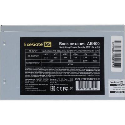 Блок питания ExeGate EX219183RUS ATX 400W 8см AB400, fan, 24p+4p, 3xSATA, 2xIDE, FDD