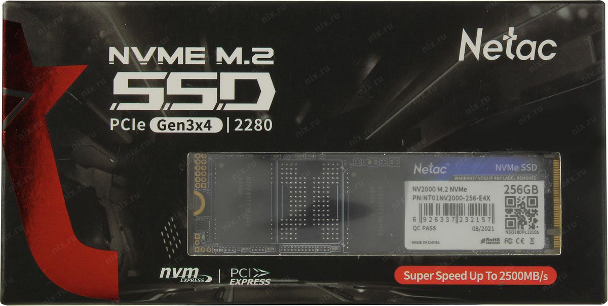Накопитель SSD Netac NT01NV2000-256-E4X 256Гб M.2 2280 NV2000 NVMe