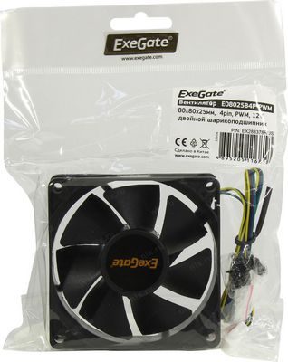 Вентилятор для корпуса ExeGate EX283378RUS 80x80x25 4pin E08025B4P-PWM, двойной шарикоподшипник, 22dBA