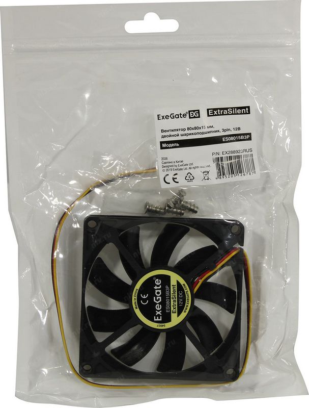 Вентилятор для корпуса ExeGate EX288923RUS 80x80x15 3pin ExtraSilent ES08015B3P (80x80x15 мм, 2-Ball (двойной шарикоподшипник), 1600RPM, 22dBA)