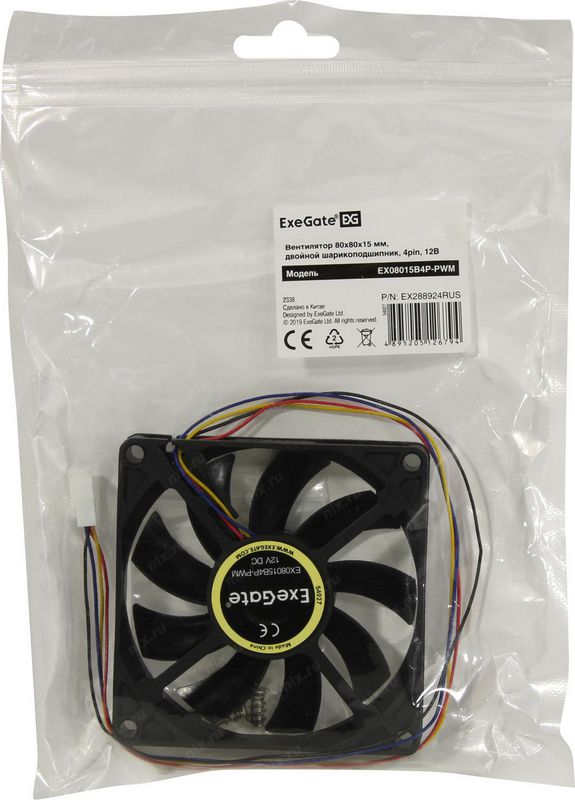 Вентилятор для корпуса ExeGate EX288924RUS 80x80x15 4pin EX08015B4P- (2-Ball (двойной шарикоподшипник), 24dBA)