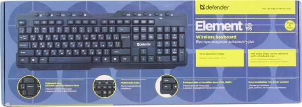 Описание Беспроводная клавиатура Defender 45195 Element HB-195 RU,черный,мультимедиа