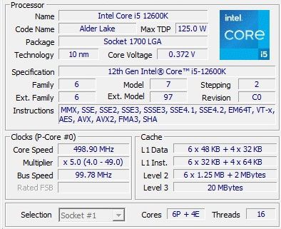 Характеристики: 3.7 ГГц 4.9 ГГц в режиме Turbo, 20MB, Intel UHD Graphics 770, LGA1700}