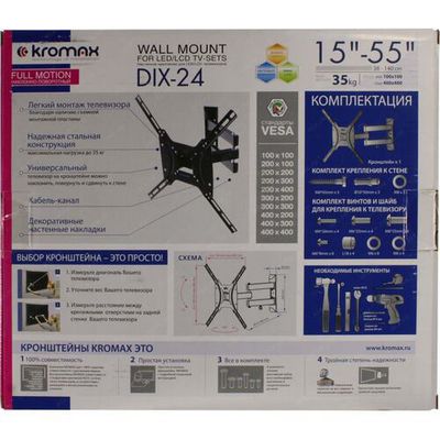 Кронштейн Kromax DIX-24 для телевизора , 15-55”, настенный, поворотно-выдвижной и наклонный (28014)