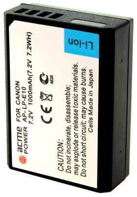 LP-E10 надежная Li-on аккумуляторная литиевая батарея от AcmePower, которая обеспечит ваш фотоаппарат энергией в любых условиях для совместимых камер Canon. Аналог Canon LP-E10