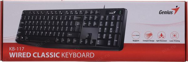 Описание Клавиатура Genius KB-117,RU,USB,Black,1,8 м
