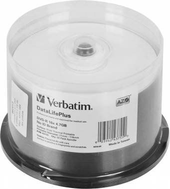 Компакт диск DVD-R Verbatim 43755 4,7Гб 16x 50шт Printable Cake Box