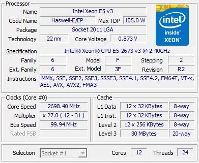 Процессор Intel Xeon E5 2673 V3 Socket 2011-v3 2,3ГГц 12С/24T