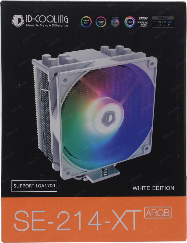 Кулер для процессора ID-Cooling SE-214-XT ARGB WHITE 180W 4pin башенн. LGA1700/1200/115X/AM4 (16шт/кор, TDP 180W, PWM, 4 тепл.трубки прямого контакта, FAN 120mm, Addressable RGB LED) RET