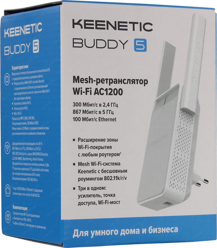 Усилитель Wi-Fi сигнала KEENETIC Buddy 5 (KN-3310) Двухдиапазонный Mesh-ретранслятор сигнала Wi-Fi AC1200 с портом Ethernet Buddy 5